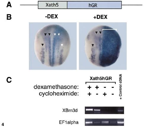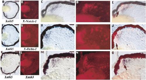 Notch signaling can inhibit Xath5 function in the neural plate and developing retina. , Schneider ML, Turner DL, Vetter ML ., Mol Cell Neurosci. November 1, 2001; 18 (5): 458-72.