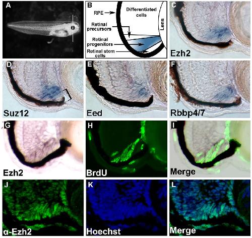 Polycomb repressive complex PRC2 regulates Xenopus retina development downstream of Wnt/ β-catenin signaling. , Aldiri I , Moore KB , Hutcheson DA , Zhang J, Vetter ML ., Development. July 1, 2013; 140 (14): 2867-78.