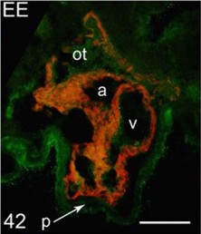 Smad1 transcription factor integrates BMP2 and Wnt3a signals in migrating cardiac progenitor cells., Song J, McColl J, Camp E, Kennerley N, Mok GF, McCormick D, Grocott T, Wheeler GN, Münsterberg AE., Proc Natl Acad Sci U S A. May 20, 2014; 111 (20): 7337-42. |