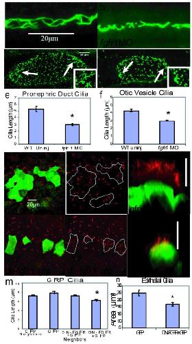 FGF signalling during embryo development regulates cilia length in diverse epithelia. , Neugebauer JM, Amack JD, Peterson AG, Bisgrove BW, Yost HJ ., Nature. April 2, 2009; 458 (7238): 651-4.