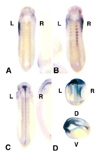 Linkage of cardiac left- right asymmetry and dorsal- anterior development in Xenopus. , Danos MC, Yost HJ ., Development. May 1, 1995; 121 (5): 1467-74.