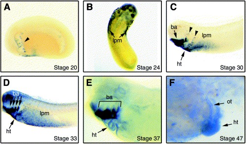 Vertebrate model systems in the study of early heart development: Xenopus and zebrafish. , Lohr JL, Yost HJ ., Am J Med Genet. January 1, 2000; 97 (4): 248-57.
