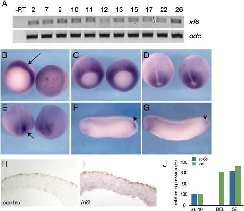 Maternal Interferon Regulatory Factor 6 is required for the differentiation of primary superficial epithelia in Danio and Xenopus embryos. , Sabel JL, d'Alençon C, O'Brien EK, Van Otterloo E, Lutz K, Cuykendall TN , Schutte BC, Houston DW , Cornell RA., Dev Biol. January 1, 2009; 325 (1): 249-62.