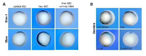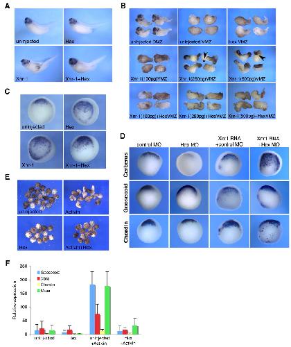 Hex acts with beta-catenin to regulate anteroposterior patterning via a Groucho-related co-repressor and Nodal., Zamparini AL, Watts T, Gardner CE, Tomlinson SR, Johnston GI, Brickman JM., Development. September 1, 2006; 133 (18): 3709-22. |