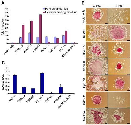 Transcriptional activation by Oct4 is sufficient for the maintenance and induction of pluripotency., Hammachi F, Morrison GM, Sharov AA, Livigni A, Narayan S, Papapetrou EP, O'Malley J, Kaji K, Ko MS, Ptashne M, Brickman JM., Cell Rep. February 23, 2012; 1 (2): 99-109. |