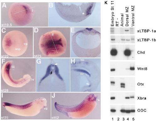 The latent- TGFbeta-binding-protein-1 (LTBP-1) is expressed in the organizer and regulates nodal and activin signaling. , Altmann CR , Chang C , Muñoz-Sanjuán I, Bell E , Heke M, Rifkin DB, Brivanlou AH ., Dev Biol. August 1, 2002; 248 (1): 118-27.