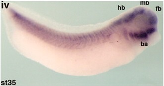 Characterization of Xenopus Phox2a and Phox2b defines expression domains within the embryonic nervous system and early heart field. , Talikka M, Stefani G, Brivanlou AH , Zimmerman K., Gene Expr Patterns. September 1, 2004; 4 (5): 601-7.