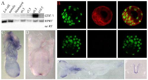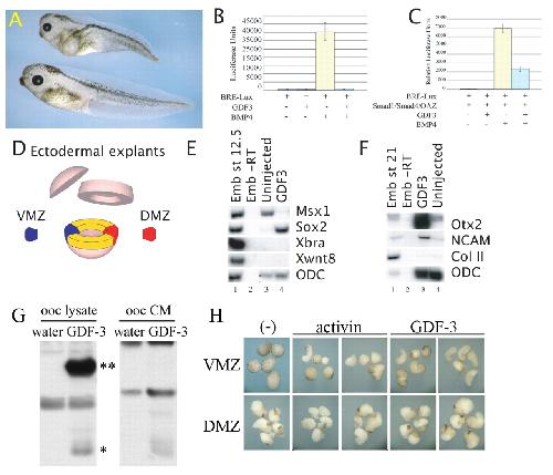 GDF3, a BMP inhibitor, regulates cell fate in stem cells and early embryos. , Levine AJ, Brivanlou AH ., Development. January 1, 2006; 133 (2): 209-16.