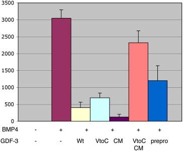 GDF3 is a BMP inhibitor that can activate Nodal signaling only at very high doses. , Levine AJ, Levine ZJ, Brivanlou AH ., Dev Biol. January 1, 2009; 325 (1): 43-8.