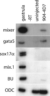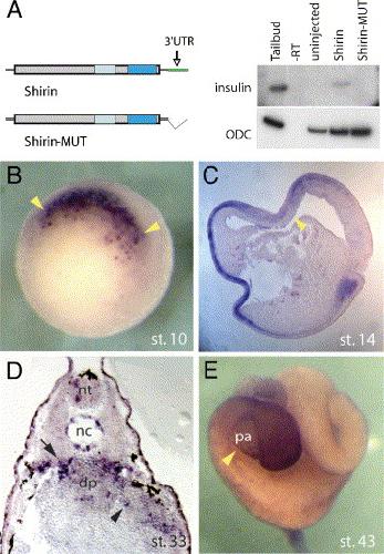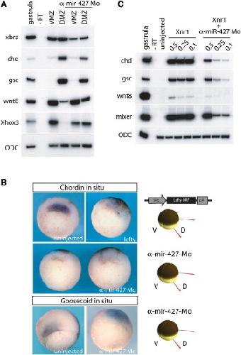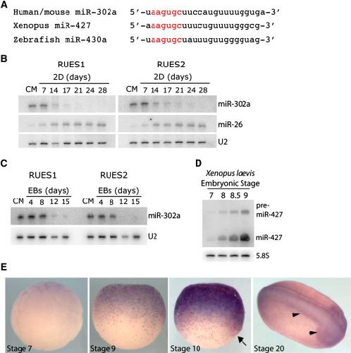 The miR-430/427/302 family controls mesendodermal fate specification via species-specific target selection. , Rosa A, Spagnoli FM , Brivanlou AH ., Dev Cell. April 1, 2009; 16 (4): 517-27.