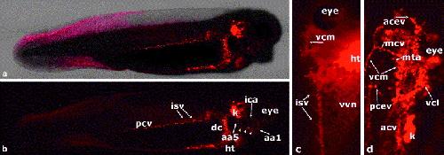 Fluorescent labeling of endothelial cells allows in vivo, continuous characterization of the vascular development of Xenopus laevis. , Levine AJ, Munoz-Sanjuan I, Bell E , North AJ, Brivanlou AH ., Dev Biol. February 1, 2003; 254 (1): 50-67.