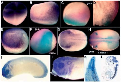 Geminin, a neuralizing molecule that demarcates the future neural plate at the onset of gastrulation. , Kroll KL , Salic AN, Evans LM, Kirschner MW ., Development. August 1, 1998; 125 (16): 3247-58.