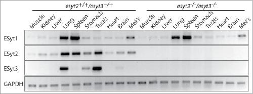 Loss of Extended Synaptotagmins ESyt2 and ESyt3 does not affect mouse development or viability, but in vitro cell migration and survival under stress are affected. , Herdman C, Tremblay MG, Mishra PK, Moss T ., Cell Cycle. January 1, 2014; 13 (16): 2616-25.