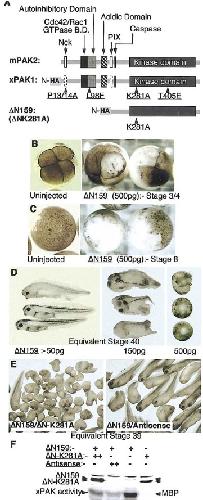The catalytic domain of xPAK1 is sufficient to induce myosin II dependent in vivo cell fragmentation independently of other apoptotic events. , Bisson N, Islam N, Poitras L, Jean S, Bresnick A, Moss T ., Dev Biol. November 15, 2003; 263 (2): 264-81.