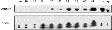 The vesicular glutamate transporter 1 ( xVGlut1) is expressed in discrete regions of the developing Xenopus laevis nervous system. , Gleason KK, Dondeti VR, Hsia HL, Cochran ER, Gumulak-Smith J, Saha MS ., Gene Expr Patterns. August 1, 2003; 3 (4): 503-7.