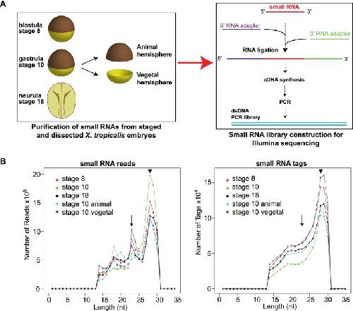 Small RNA profiling of Xenopus embryos reveals novel miRNAs and a new class of small RNAs derived from intronic transposable elements. , Harding JL, Horswell S, Heliot C, Armisen J, Zimmerman LB , Luscombe NM, Miska EA, Hill CS ., Genome Res. January 1, 2014; 24 (1): 96-106.