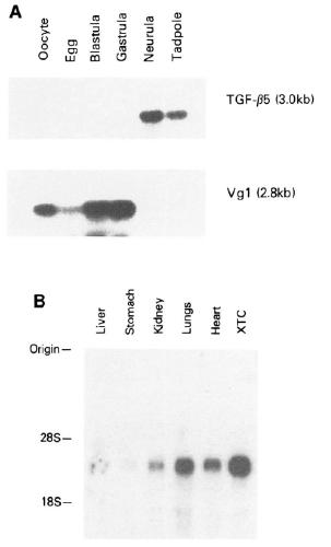 Identification of a novel transforming growth factor-beta ( TGF-beta 5) mRNA in Xenopus laevis. , Kondaiah P, Sands MJ, Smith JM, Fields A, Roberts AB , Sporn MB, Melton DA ., J Biol Chem. January 15, 1990; 265 (2): 1089-93.