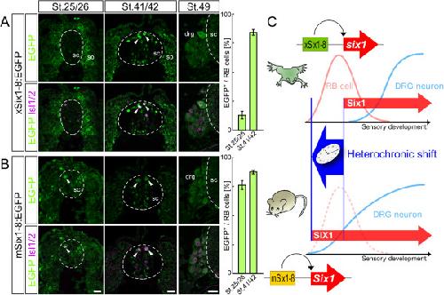 Six1 is a key regulator of the developmental and evolutionary architecture of sensory neurons in craniates. , Yajima H, Suzuki M , Ochi H , Ikeda K, Sato S, Yamamura K, Ogino H , Ueno N , Kawakami K., BMC Biol. May 29, 2014; 12 40.
