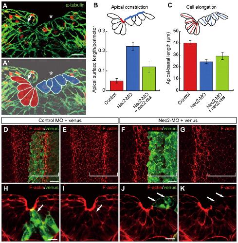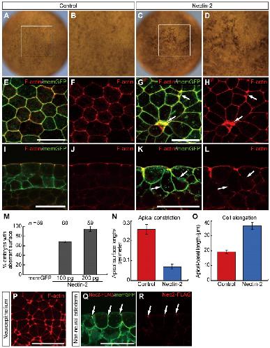 Nectin-2 and N-cadherin interact through extracellular domains and induce apical accumulation of F-actin in apical constriction of Xenopus neural tube morphogenesis. , Morita H, Nandadasa S, Yamamoto TS , Terasaka-Iioka C, Wylie C , Ueno N ., Development. April 1, 2010; 137 (8): 1315-25.
