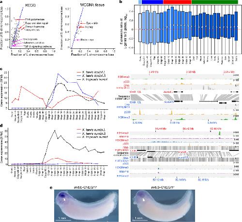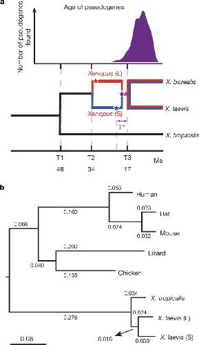 Genome evolution in the allotetraploid frog Xenopus laevis. , Session AM , Uno Y , Kwon T , Chapman JA, Toyoda A, Takahashi S , Fukui A , Hikosaka A , Suzuki A , Kondo M, van Heeringen SJ, Quigley I , Heinz S, Ogino H , Ochi H , Hellsten U, Lyons JB, Simakov O, Putnam N, Stites J, Kuroki Y, Tanaka T, Michiue T , Watanabe M, Bogdanovic O, Lister R, Georgiou G, Paranjpe SS, van Kruijsbergen I, Shu S, Carlson J, Kinoshita T, Ohta Y, Mawaribuchi S, Jenkins J, Grimwood J, Schmutz J, Mitros T, Mozaffari SV, Suzuki Y, Haramoto Y, Yamamoto TS , Takagi C, Heald R , Miller K, Haudenschild C, Kitzman J , Nakayama T , Izutsu Y , Robert J , Fortriede J , Burns K , Lotay V , Karimi K , Yasuoka Y , Dichmann DS , Flajnik MF , Houston DW , Shendure J, DuPasquier L , Vize PD , Zorn AM , Ito M, Marcotte EM , Wallingford JB , Ito Y, Asashima M , Ueno N , Matsuda Y, Veenstra GJ , Fujiyama A, Harland RM , Taira M , Rokhsar DS ., Nature. October 20, 2016; 538 (7625): 336-343.