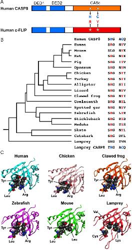 Conservation of structure and function in vertebrate c-FLIP proteins despite rapid evolutionary change. , Sakamaki K, Iwabe N, Iwata H, Imai K, Takagi C, Chiba K, Shukunami C, Tomii K, Ueno N ., Biochem Biophys Rep. July 26, 2015; 3 175-189.
