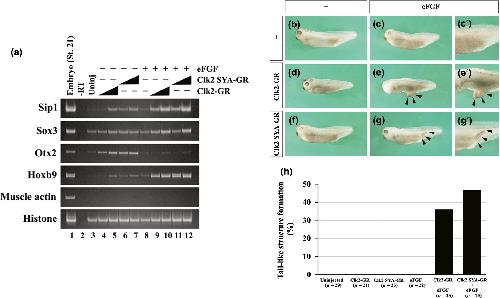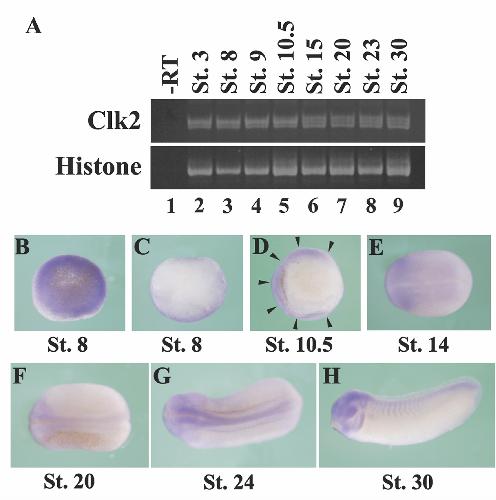 Cdc2-like kinase 2 (Clk2) promotes early neural development in Xenopus embryos. , Virgirinia RP, Jahan N, Okada M, Takebayashi-Suzuki K, Yoshida H, Nakamura M, Akao H, Yoshimoto Y, Fatchiyah F, Ueno N , Suzuki A ., Dev Growth Differ. August 1, 2019; 61 (6): 365-377.