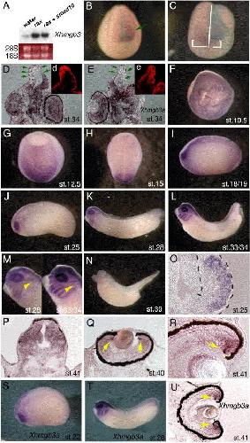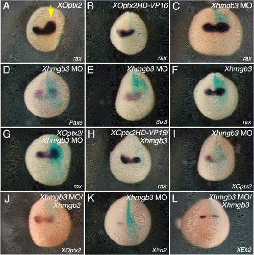 Nucleosome regulator Xhmgb3 is required for cell proliferation of the eye and brain as a downstream target of Xenopus rax/ Rx1. , Terada K, Kitayama A, Kanamoto T, Ueno N , Furukawa T., Dev Biol. March 15, 2006; 291 (2): 398-412.