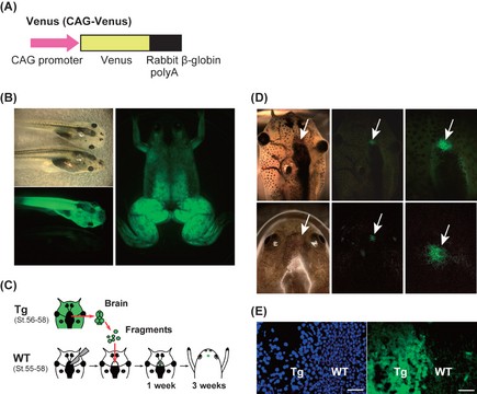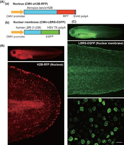 Transgenic Xenopus laevis for live imaging in cell and developmental biology. , Takagi C, Sakamaki K, Morita H, Hara Y, Suzuki M , Kinoshita N, Ueno N ., Dev Growth Differ. May 1, 2013; 55 (4): 422-33.