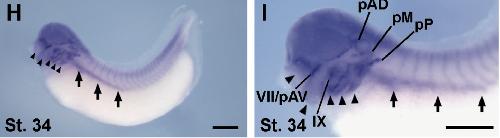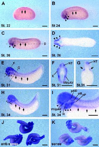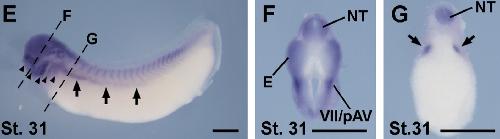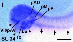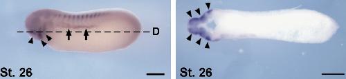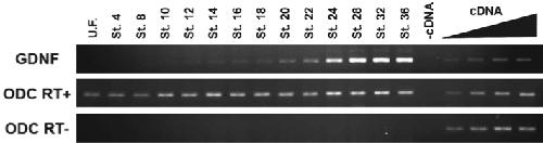GDNF expression during Xenopus development., Kyuno J, Jones EA., Gene Expr Patterns. January 1, 2007; 7 (3): 313-7.