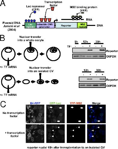 Mammalian nuclear transplantation to Germinal Vesicle stage Xenopus oocytes - a method for quantitative transcriptional reprogramming. , Halley-Stott RP, Pasque V, Astrand C, Miyamoto K , Simeoni I, Jullien J , Gurdon JB ., Methods. May 1, 2010; 51 (1): 56-65.