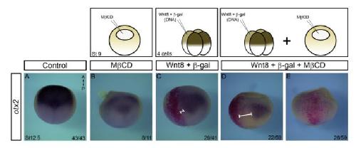 Cholesterol-rich membrane microdomains modulate Wnt/β-catenin morphogen gradient during Xenopus development., Reis AH, Moreno MM, Maia LA, Oliveira FP, Santos AS, Abreu JG., Mech Dev. November 1, 2016; 142 30-39. |
