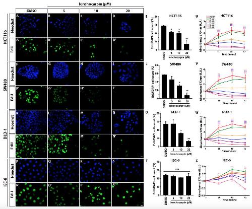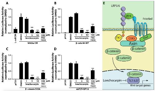 The Chalcone Lonchocarpin Inhibits Wnt/β-Catenin Signaling and Suppresses Colorectal Cancer Proliferation., Predes D, Oliveira LFS, Ferreira LSS, Maia LA, Delou JMA, Faletti A, Oliveira I, Amado NG, Reis AH, Fraga CAM, Kuster R, Mendes FA, Borges HL, Abreu JG., Cancers (Basel). December 7, 2019; 11 (12): |