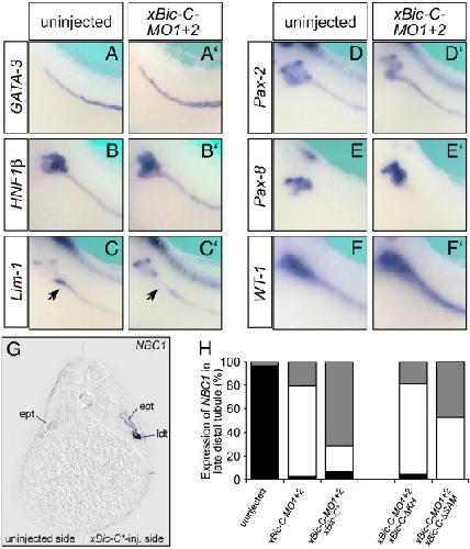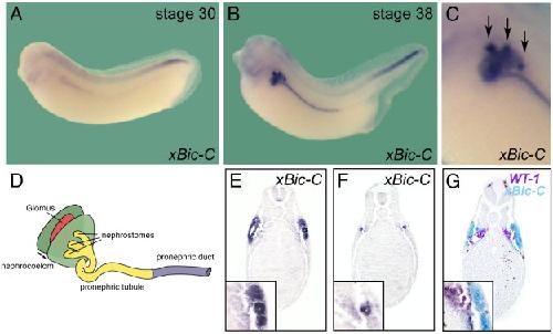 Xenopus Bicaudal-C is required for the differentiation of the amphibian pronephros. , Tran U , Pickney LM, Ozpolat BD , Wessely O ., Dev Biol. July 1, 2007; 307 (1): 152-64.