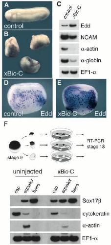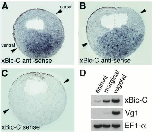 The Xenopus homologue of Bicaudal-C is a localized maternal mRNA that can induce endoderm formation. , Wessely O , De Robertis EM ., Development. May 1, 2000; 127 (10): 2053-62.