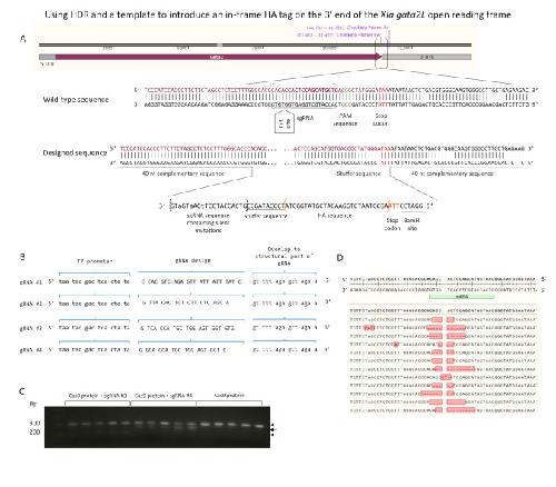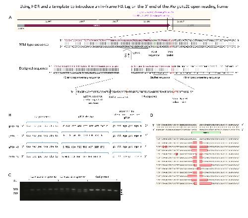 Using HDR and a template to introduce an in-frame HA tag on the 3'' end of the Xenopus laevis gata2.L open reading frame. , Piccinni M , Sharpe C , Guille M ., MicroPubl Biol. September 17, 2019; 2019