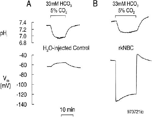 Extracellular HCO(3)(-) dependence of electrogenic Na/HCO(3) cotransporters cloned from salamander and rat kidney., Grichtchenko II, Romero MF, Boron WF., J Gen Physiol. May 1, 2000; 115 (5): 533-46. |