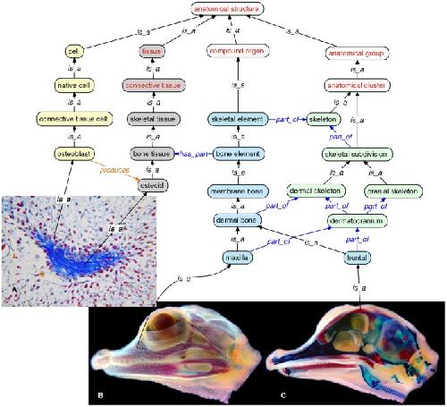 A unified anatomy ontology of the vertebrate skeletal system., Dahdul WM, Balhoff JP, Blackburn DC, Diehl AD, Haendel MA, Hall BK, Lapp H, Lundberg JG, Mungall CJ, Ringwald M, Segerdell E, Van Slyke CE, Vickaryous MK, Westerfield M, Mabee PM., PLoS One. January 1, 2012; 7 (12): e51070. |