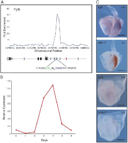 Genomic targets of Brachyury (T) in differentiating mouse embryonic stem cells. , Evans AL, Faial T, Gilchrist MJ , Down T, Vallier L, Pedersen RA, Wardle FC, Smith JC ., PLoS One. January 1, 2012; 7 (3): e33346.