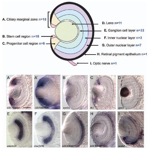 A large scale screen for neural stem cell markers in Xenopus retina. , Parain K , Mazurier N, Bronchain O , Borday C, Cabochette P, Chesneau A, Colozza G , El Yakoubi W, Hamdache J, Locker M , Gilchrist MJ , Pollet N , Perron M ., Dev Neurobiol. April 1, 2012; 72 (4): 491-506.