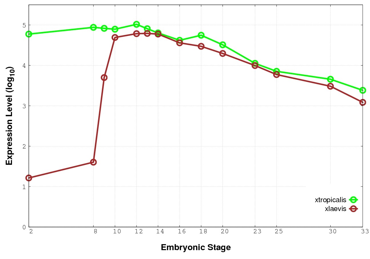 | RNA-Seq and EST Transcriptome profiles | ???displayGene.tropicalis??? | ???displayGene.laevis???.L | ???displayGene.laevis???.S |