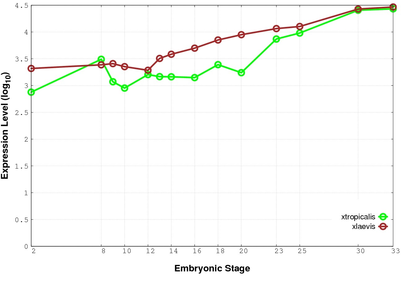 | RNA-Seq and EST Transcriptome profiles | ???displayGene.tropicalis??? | ???displayGene.laevis???.L | ???displayGene.laevis???.S |
