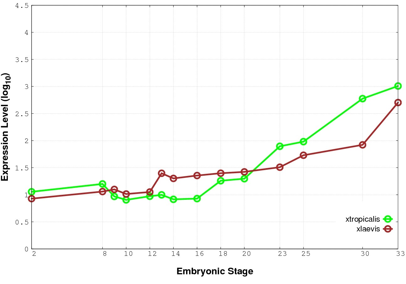 | RNA-Seq and EST Transcriptome profiles | ???displayGene.tropicalis??? | ???displayGene.laevis???.L | ???displayGene.laevis???.S |
