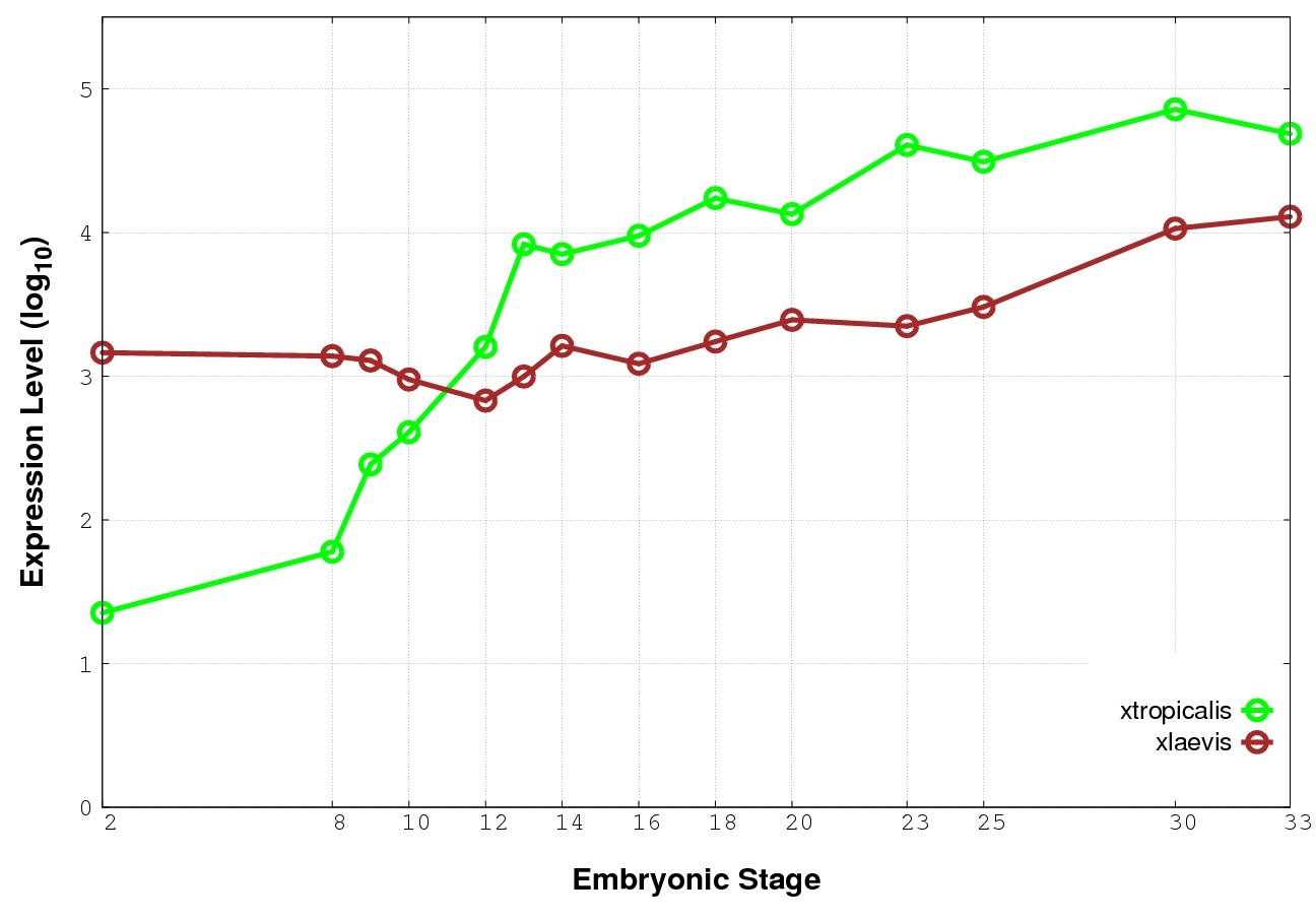 | RNA-Seq and EST Transcriptome profiles | ???displayGene.tropicalis??? | ???displayGene.laevis???.L | ???displayGene.laevis???.S |