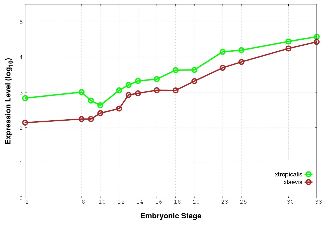 | RNA-Seq and EST Transcriptome profiles | ???displayGene.tropicalis??? | ???displayGene.laevis???.L | ???displayGene.laevis???.S |