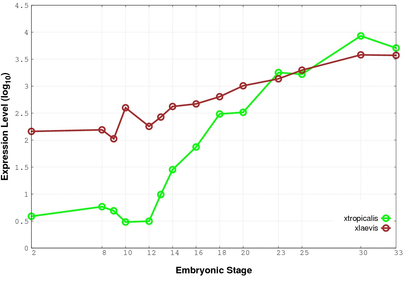 | RNA-Seq and EST Transcriptome profiles | ???displayGene.tropicalis??? | ???displayGene.laevis???.L | ???displayGene.laevis???.S |