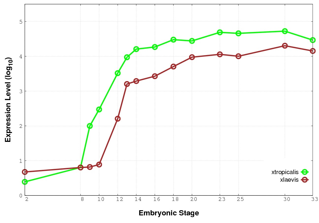 | RNA-Seq and EST Transcriptome profiles | ???displayGene.tropicalis??? | ???displayGene.laevis???.L | ???displayGene.laevis???.S |