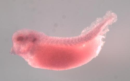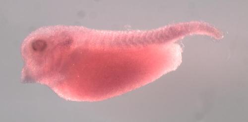 | brain cement gland central retina eye fat body otic vesicle pharyngeal arch retina retinal ganglion cell layer skeletal muscle somite tail thymus whole organism |