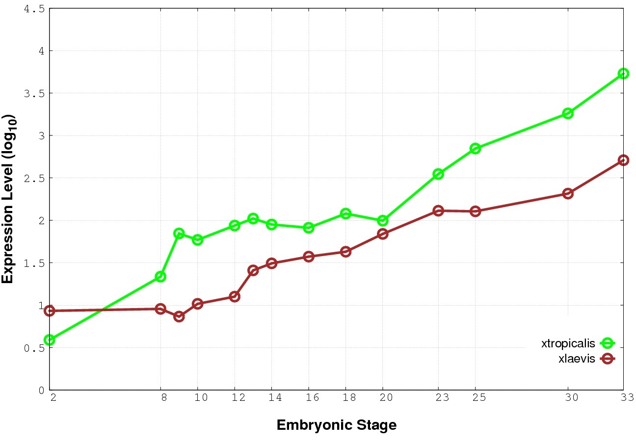 | RNA-Seq and EST Transcriptome profiles | ???displayGene.tropicalis??? | ???displayGene.laevis???.L | ???displayGene.laevis???.S |