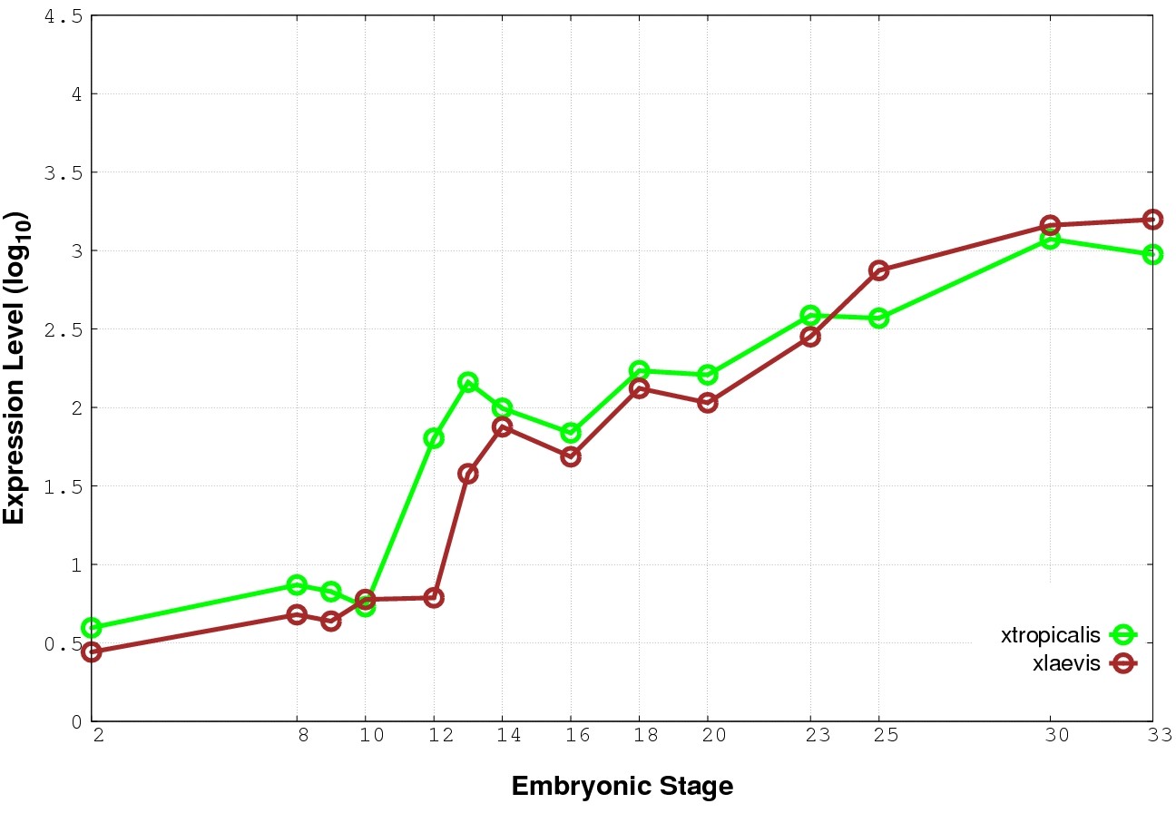 | RNA-Seq and EST Transcriptome profiles | ???displayGene.tropicalis??? | ???displayGene.laevis???.L | ???displayGene.laevis???.S |