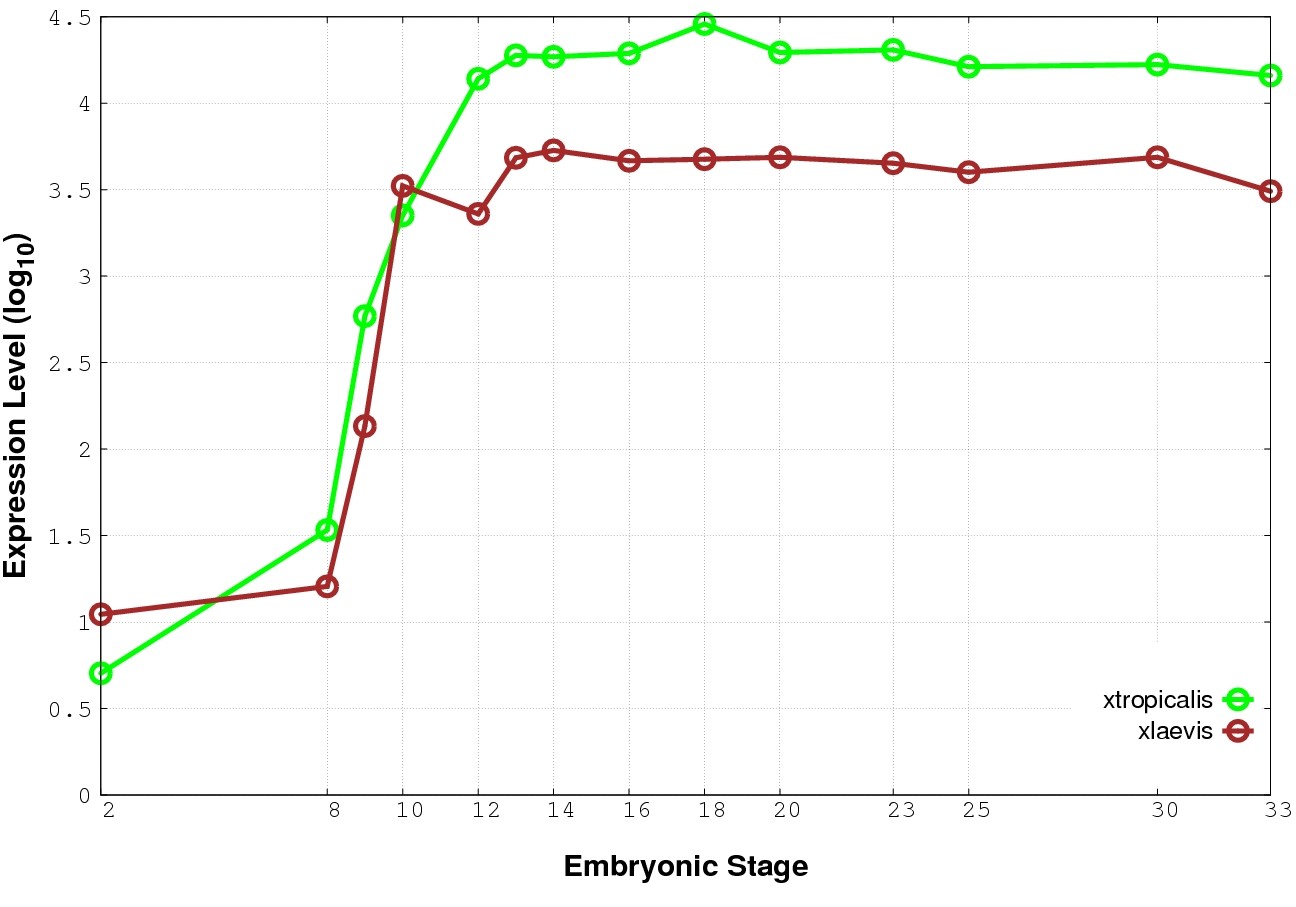 | RNA-Seq and EST Transcriptome profiles | ???displayGene.tropicalis??? | ???displayGene.laevis???.L | ???displayGene.laevis???.S |